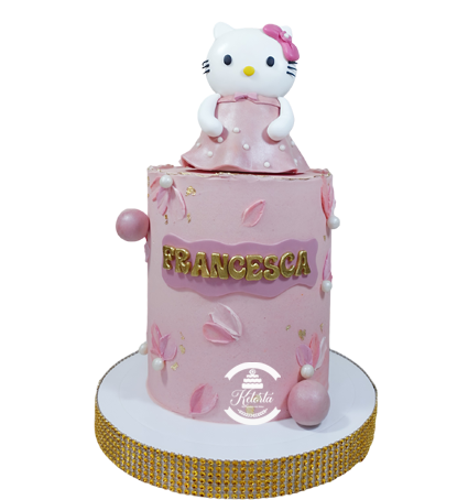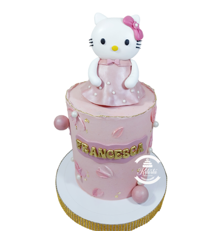 Torta 16cmx 16cm( 15 porciones) doble relleno, cubierta con crema Buttercream. Decorado con perlas y hoja de oro comestible, modelado de figura en diseño 3d en pasta de goma comestible.