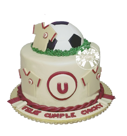 Torta de partido «U» 16cm (12 porciones): Decorada con masa fondant y detalles en masa elástica.